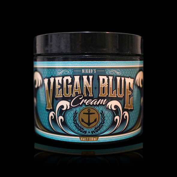 Vegan Blue Glide Cream by Nikko Hurtado is a skin care product and glide with many health benefits. The base ingredient is Turmeric Root which is a natural anti-inflammatory. Vegan Blue aids in the healing process to ensure your client maintains healthy skin.